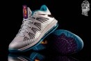 NIKE LEBRON X – jest dziesiątym, jubileuszowym modelem, znanej marki, jaką jest - LeBron James. Gwiazdor Miami Heat, dołączył do grona dwóch zawodników (Michael Jordan, oraz Allen Iverson), których linia liczyła powyżej dziesięciu modeli. Dodatkowo, jako pierwszy but w historii Nike, posiada dwa innowacyjne systemy, jakimi są: AIR MAX 360, oraz Dynamic FlyWire. Air Max 360 – zastosowany na długości całej podeszwy. Odkrycie całego systemu, daję bardzo przyjemny efekt dla oka i poprawia estetykę buta. Początkowo, można odczuć iż system jest trochę za twardy, lecz po rozbieganiu staję się ultra miękki, oraz świetnie odpowiada za amortyzację. Air Max 360, stanowi świetną podstawę buta i pomimo tego, że można odczuć, iż system jest dość wysoki, zapewnia komfort, oraz pewną stabilność. Wracając do Dynamic FlyWire – druga, ulepszona generacja FlyWire. Tym razem mamy do czynienia, z dynamicznym systemem, który wtapia się w całą cholewkę buta i mamy uczucie, iż cały but jest przedłużeniem naszej stopy. Dodatkowo, przy dużej częstotliwości ruchów, przy dynamicznych ruchach, oraz zwrotach, stopa idealnie jest zablokowana i praktycznie pracuję razem z butem. Dwa wyżej wymienione systemy powodują, iż są głównymi plusami tego modelu i sprawiają, iż Lebron X, są kompletne. Guma, z której wykonana jest podeszwa, zapewnia świetną przyczepność, na każdej nawierzchni. Jest to wersja "LOW" tego modelu. Godny polecenia, nie tylko dla podkoszowych, ale również, dla niskich graczy.
