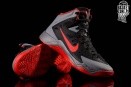 NIKE ZOOM HYPERQUICKNESS – w dniu zakończenia sezonu NBA 2012/2013, premiere ma nowy model na sezon 2013/2014. Świetny lekki but, który można uznać, za połączenie Nike Zoom Hyperdisruptor, oraz Nike Zoom Hyperenforcer. Jest dość wąski, przez co stopa idealnie współpracuję, w trakcie użytkowania. Pokryty w całości technologią Fuse. Za system amortyzacji odpowiada jednostka Nike ZOOM. Jodełkowy system trakcji, zapewnia idealną przyczepność. Dodatkowe wzmocnienia, w okolicach pięty chronią stopę przed kontuzjami. Jego dużym plusem, jest przewiewność, wraz z niską wagą obuwia. Model w kolorystyce wyjazdowej MIAMI HEAT