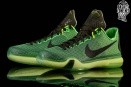 Nike Kobe X - dziesiąta odsłona modelu sygnowanego nazwiskiem zawodnika Los Angeles Lakers - Kobe Bryant'a. Obuwie wykonane z syntetycznych materiałów, które idealnie dopasowywują się do naszej stopy, a zaraz zapewniają doskonałą przewiewność oraz stabilizację. Osadnia z włókna węglowego zapewnia boczną dodatkową stabilizację. Za system amortyzacji odpowiada pianka Lunarlon, wspomagana poduszką Nike Zoom na pięcie. Język został wykonany z nubukowej skóry. Przezroczysta gumowa podeszwa oraz specjalnie przygotowany wzorek spełniają swoją rolę i but idealnie trzyma się parkietu.