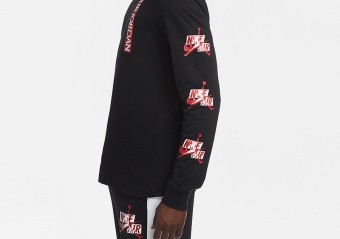 NIKE AIR JORDAN JUMPMAN CLASSICS LONG-SLEEVE CREW TEE BLACK