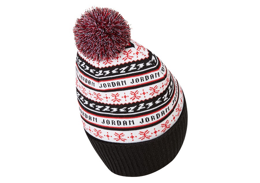 Zachowaj ciepło w zimne dni dzięki czapce z tkaniny Jordan Jumpman Holiday, ozdobionej świąteczną grafiką i kolorowym pomponem.